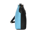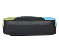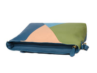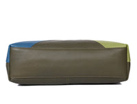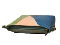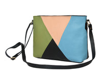 Add a splash of color and elegance to your daily style with this chic color-block leather crossbody bag. Designed with a blend of blue, green, and peach panels, it’s a perfect accessory for the modern, stylish individual.