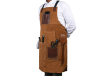 The Arucas Suede Apron from Aaron Leather Goods is a One Size Fits utility Apron which has a diversified appeal from Chef's to Metal Forgers to Construction Workers to Home Cooking to Utility Workers. An Apron for One and All so be the one to own a One Size Fits All Utility Apron. Ever wondered what reinforced stitching, premium quality Suede Leather, cross back straps and a personified design can do for the end product.