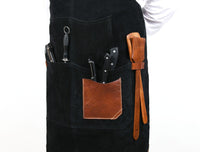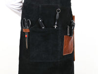 Featuring a rich black suede body and adjustable leather straps, this apron balances softness, structure, and a clean silhouette for modern creators.