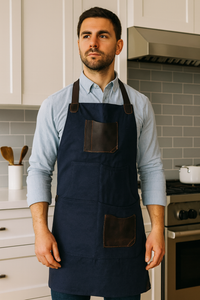 Made with waxed canvas and premium leather straps, this apron provides both protection and style. Multiple utility pockets, cross-back straps, and metal detailing make it a go-to for craftsmen, baristas, and chefs alike.