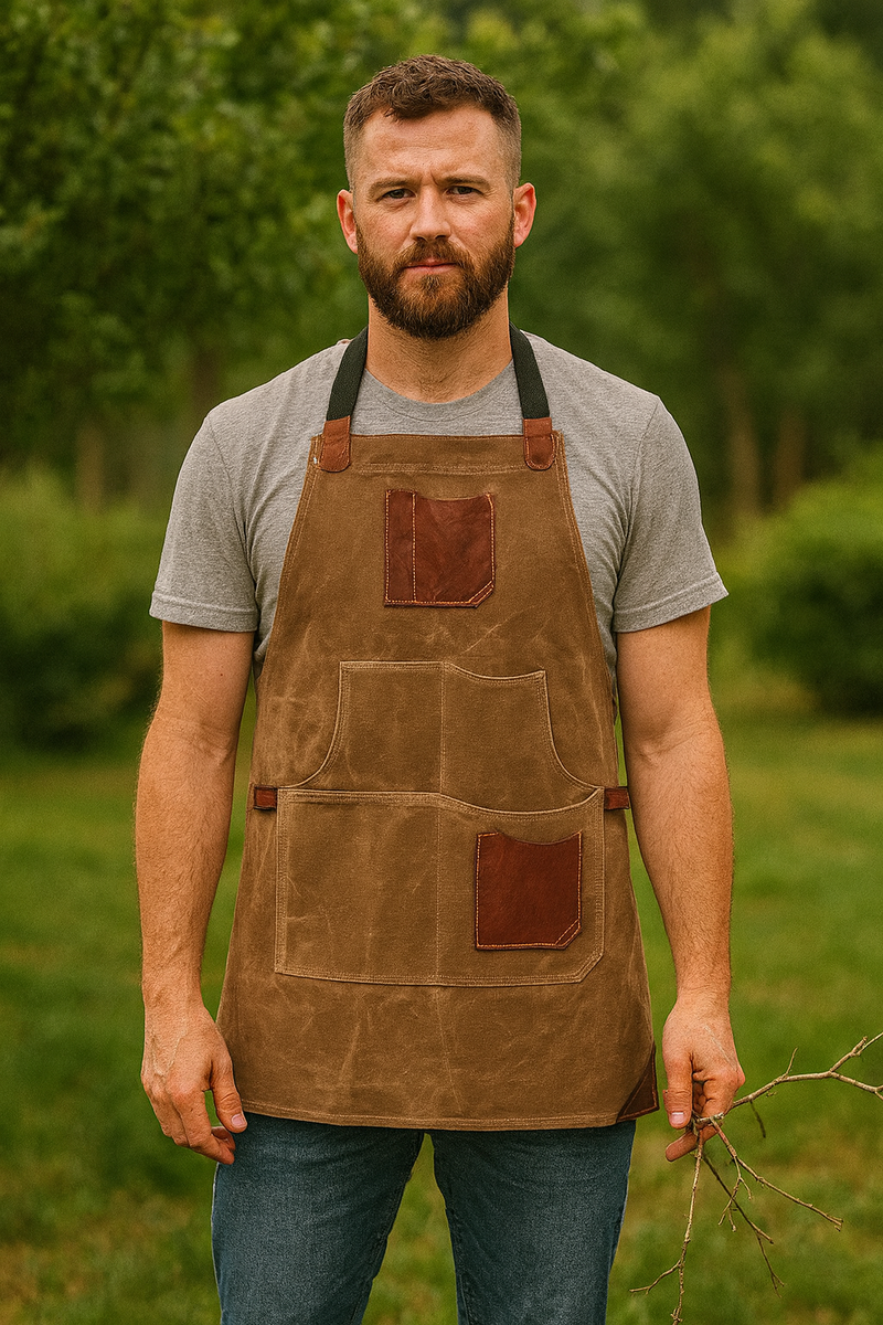 It features water-resistant canvas, strong leather straps, and reinforced utility pockets. Ideal for chefs, craftsmen, painters, or potters who work with passion.