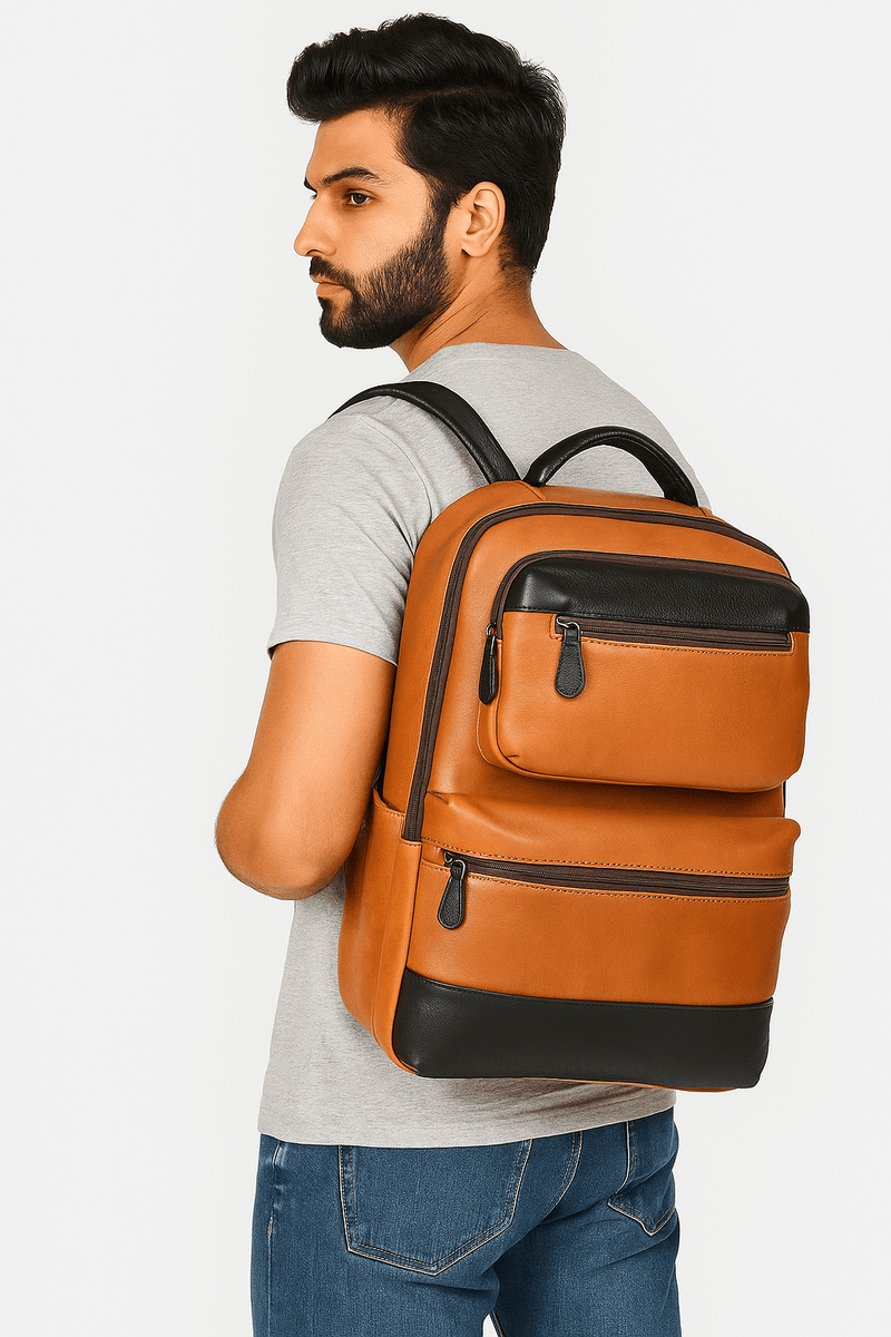 Handcrafted from premium top-grain leather, this backpack showcases a timeless brown body accented with sleek black details — offering durability, sophistication, and practicality in one.