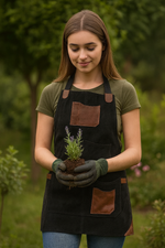 Featuring a rich black suede body and adjustable leather straps, this apron balances softness, structure, and a clean silhouette for modern creators.