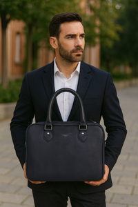 Tailored for professionals who appreciate craftsmanship, this Leather Portfolio Bag is made with premium Top Grain Leather. Its sleek structure and subtle styling make it a timeless companion for office, meetings, and formal occasions.