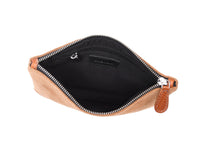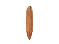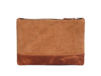 Crafted from soft brown suede with durable crocodile-patterned leather trim, this pouch is designed for both style and practicality.