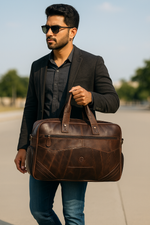This responsibly made bag pairs sustainable materials with luxurious Indian craftsmanship. Its warm walnut tone and spacious body make it a practical and eco-conscious travel companion.