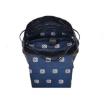 The spacious main compartment features a drawstring closure and magnetic-buckle flap, ensuring your essentials are secure yet easy to access. Inside, a dedicated padded laptop sleeve, multi-utility pockets, and our signature monogrammed blue fabric lining add both elegance and organization.