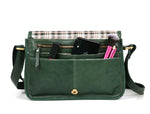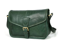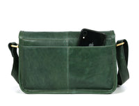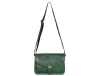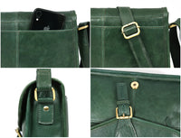 Handcrafted Green Leather Crossbody Bag for Women – Vintage Satchel with Multiple Compartments