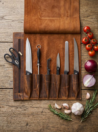 • Compact 5-Slot Tool Suite: Features precision-stitched vertical slots designed to securely house paring knives, petty knives, and essential plating tools.