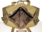 Handcrafted from heavy-duty waxed canvas and complemented with rich genuine leather trims, this bag combines rugged durability with timeless sophistication. The earthy olive-green canvas paired with deep chocolate brown leather gives it a distinct vintage charm, making it just as perfect for urban commutes as for countryside journeys.